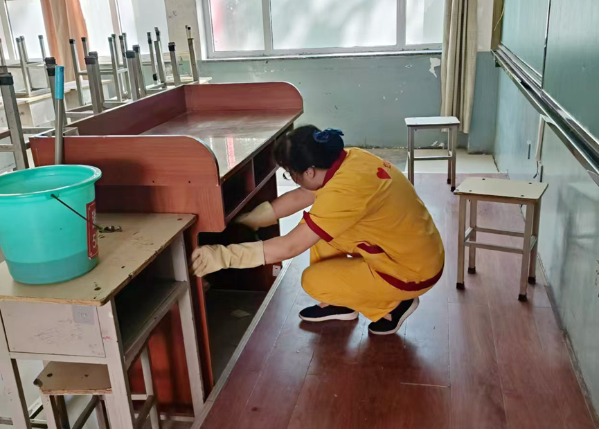 秋风送爽,金桂飘香。踏着金秋的韵律,新学期如约而至。为给师生提供干净整洁的校园环境,汾阳中学、汾阳四中项目处的员工提前对公寓、校园开展全方位、无死角的精细化保洁,扎实做好开学前的各项准备工作。